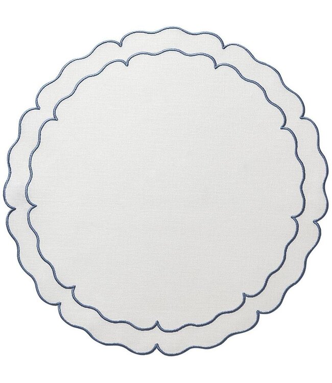 Linho Scalloped Round Placemat White and Blue