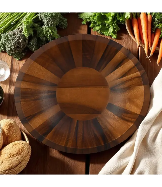 Munich Pattern Large Acacia Wood Salad Bowl